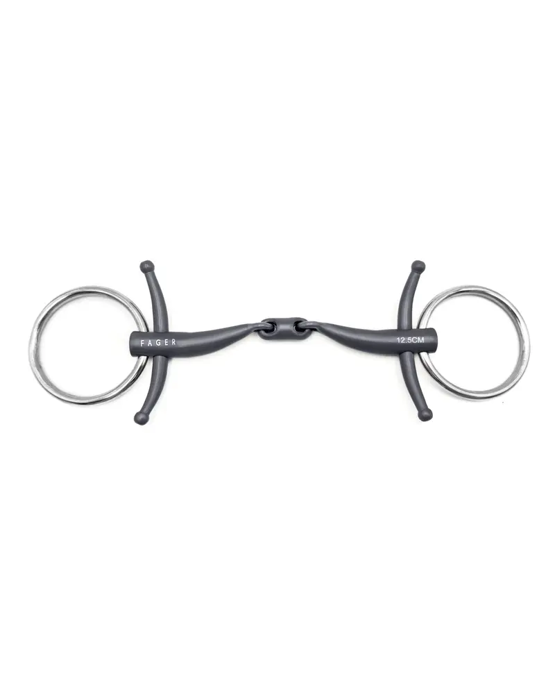 Baby Fulmer is a registered design by Fager. This sidepiece will give you a mix between the loose and fixed rings. The Fulmers will lay close to the horse’s side, helps with steering, and keep the mouthpiece steady. The loose rings are placed further away from the mouth corners, and this will put the pressure further down and inwards, encourage the horse to lift in the front, come back to your hand, and avoid a stiff feeling towards the bit. It is a very comfortable choice for many horses and a great start for a youngster.