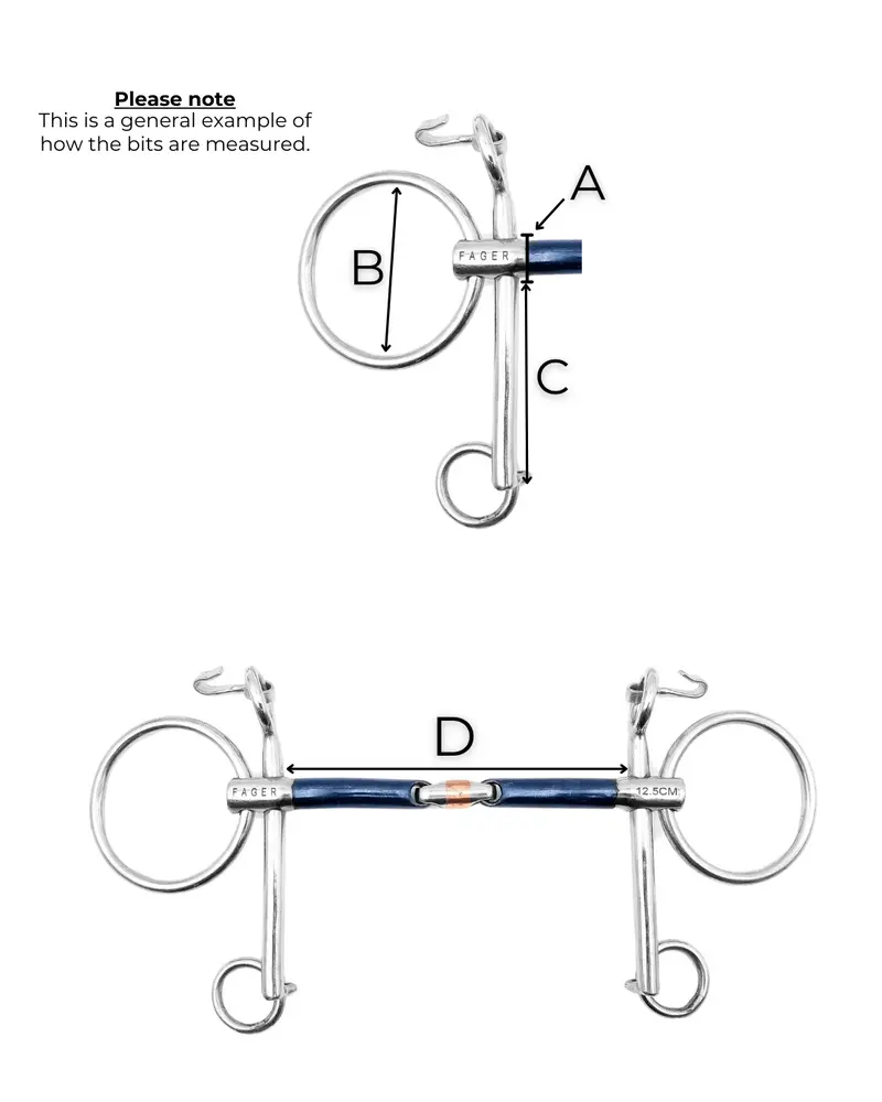 Please note, horses who are wide over the premolars/teeth may need to size up in this bit due to the upper shanks. This is because the sidepiece of the bridle is attached to the upper shank of the bit, which is placed higher up where some horses are wider than others.