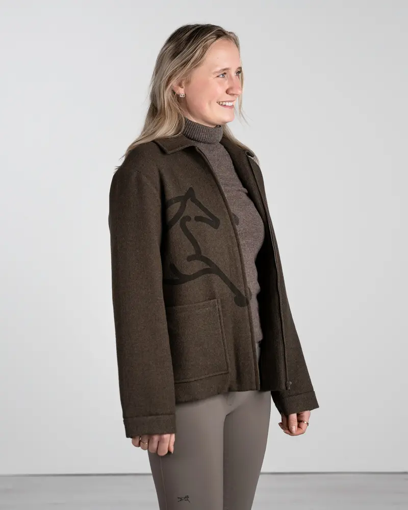 Frida Harringston- jakken blander tidløs eleganse med klassisk hestesport. Produsert i en strukturert ullignende stoffblanding tilbyr denne raffinerte jakken varme og uanstrengt stil. Perfekt for våren!